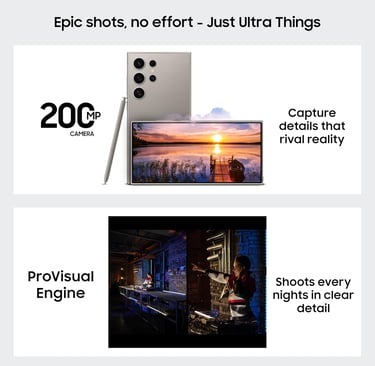 Samsung packs a versatile quad-camera setup led by a powerful 200MP main sensor.